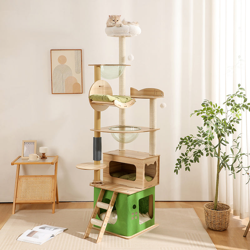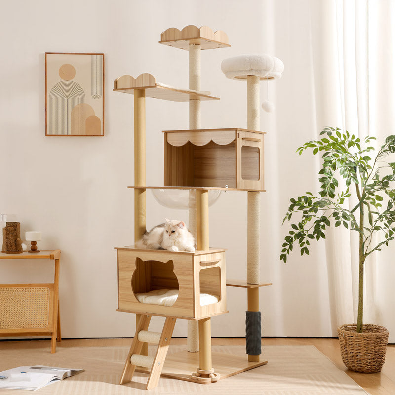 Built to match your cat’s natural instincts, this sturdy multi-level tree offers height for climbing, cozy nooks for hiding, and plush spots for peaceful naps. More than furniture - it’s your cat’s happy place.