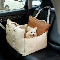 Faux Leather 3-in-1 Waterproof Dog Car Seat Bed Beige