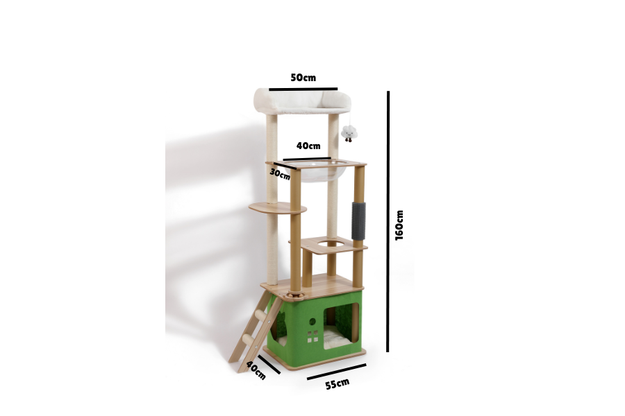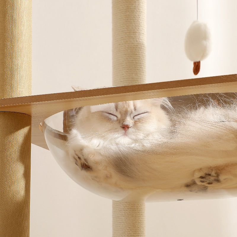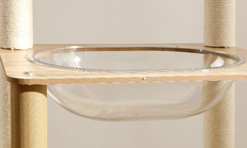 Not every cat likes to share, but with its roomy design, the 160cm cat tree prevents quarrels over territory. Perfect for single or two-cat households, it balances climbing space, a large perch, and an extra-large acrylic bowl that even a chunky cat can stretch into.