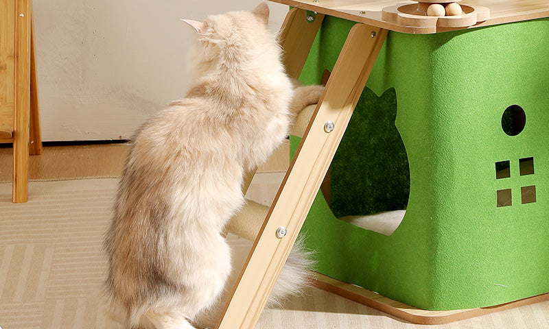 Ladders, hanging toy, and turnable balls keep your cat moving and entertained.