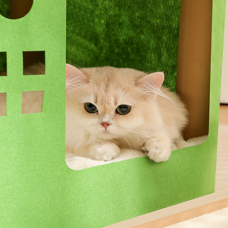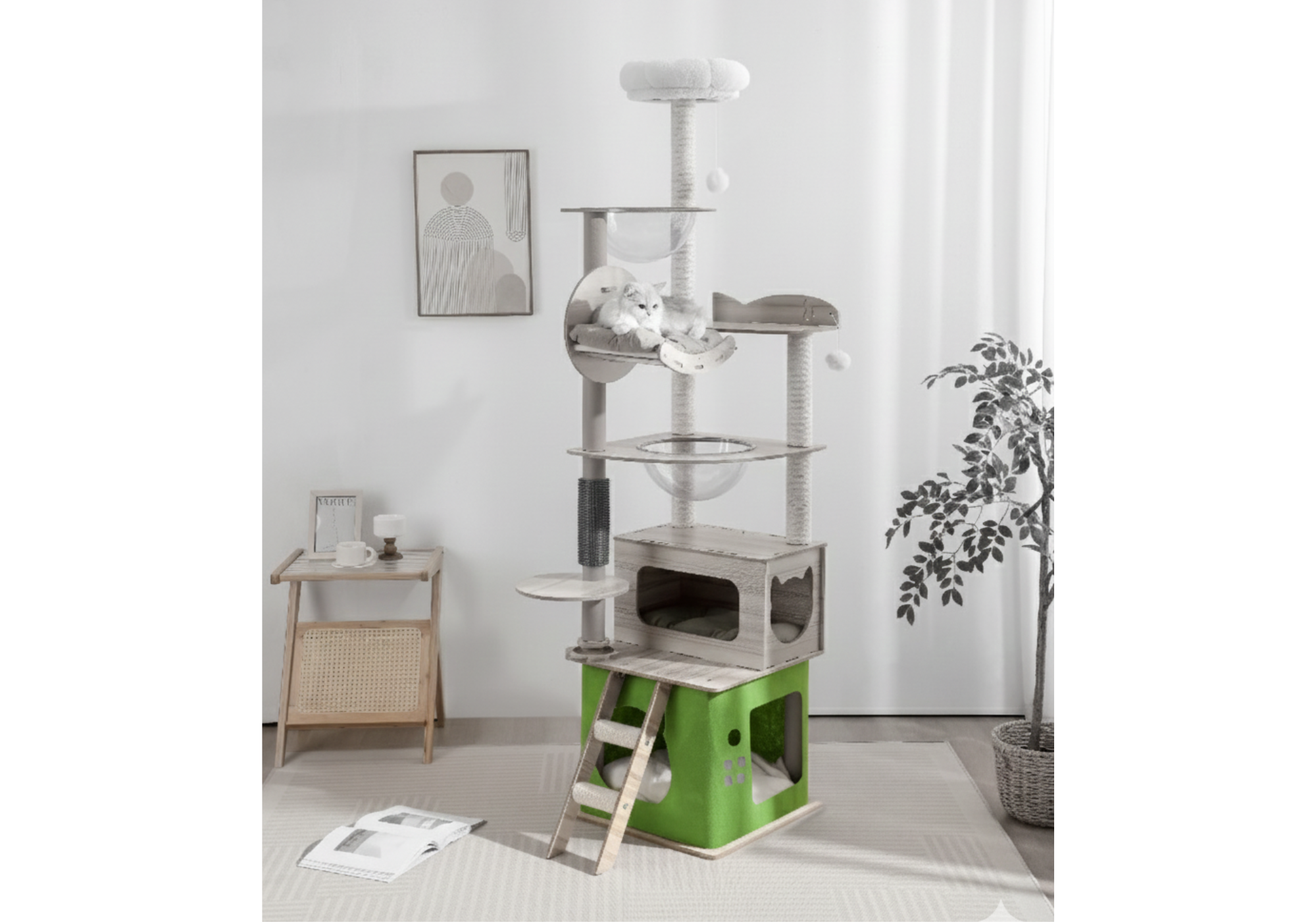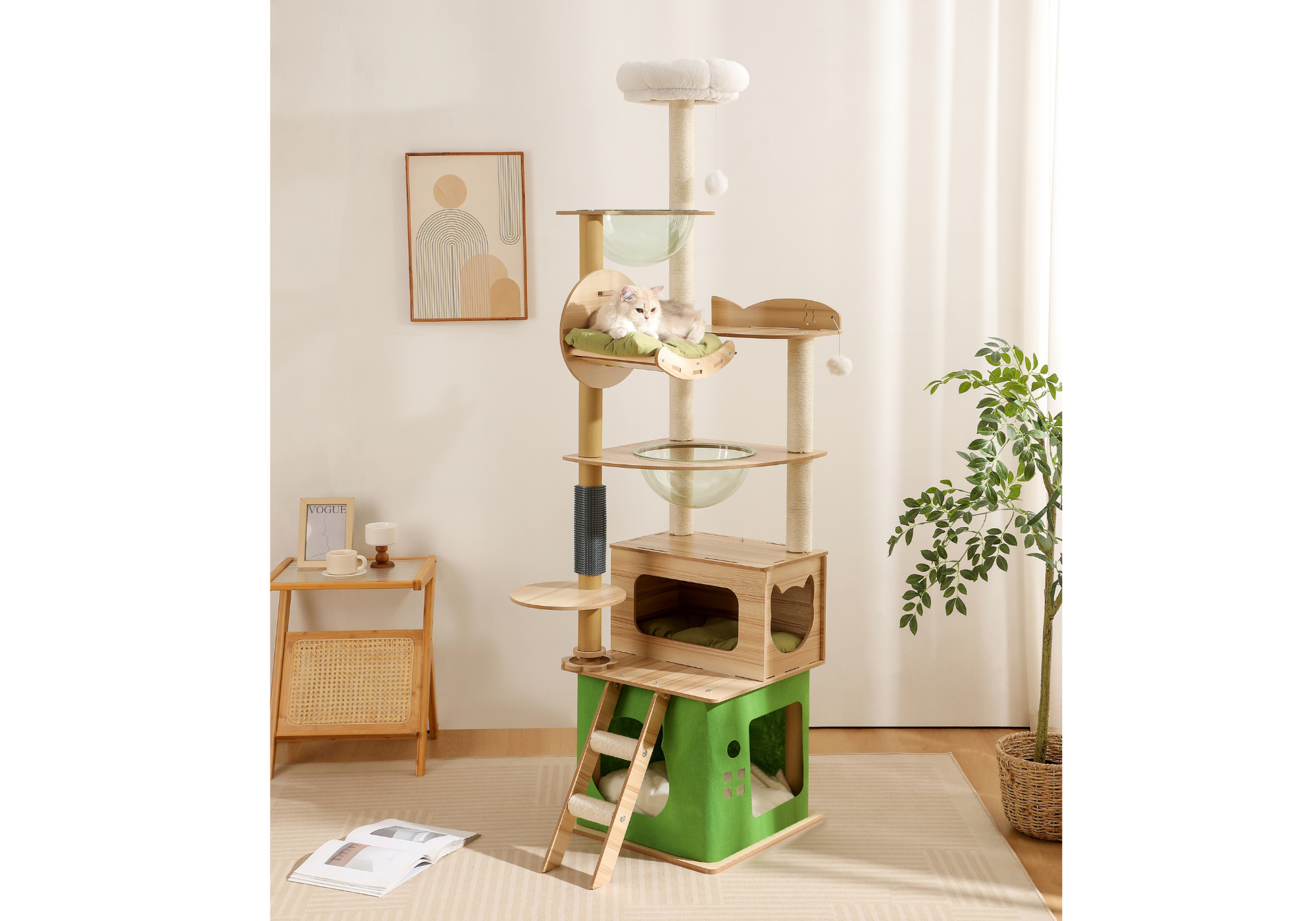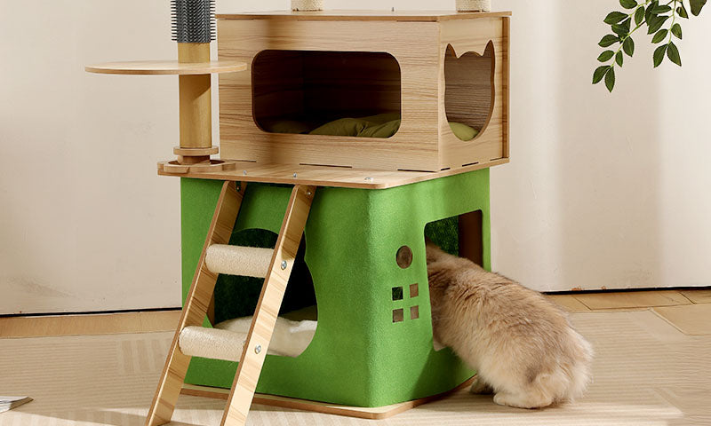 Vertical design maximizes floor space while giving cats multi-level fun.
