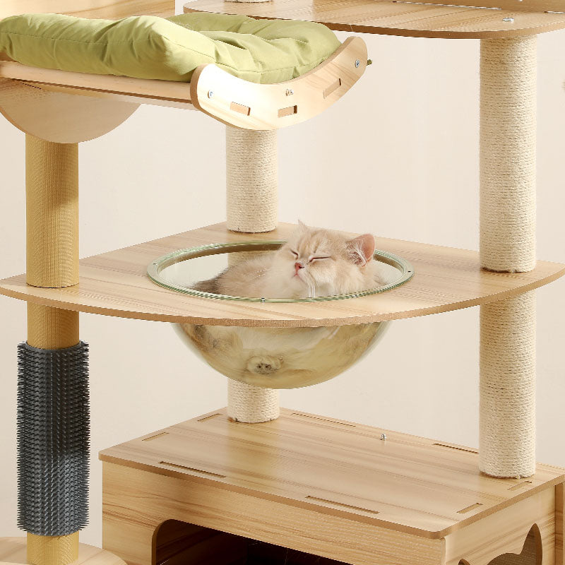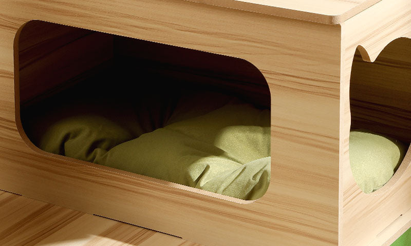 Bottom and mid-level hideouts for private naps, play, or quiet retreats.