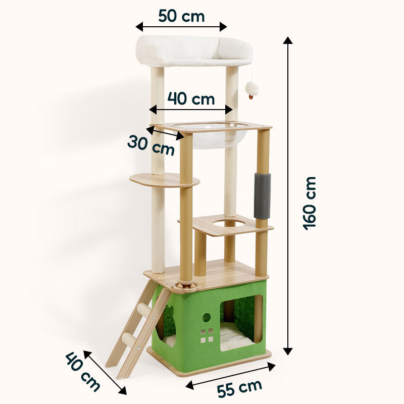 1.2 cm E1-grade eco MDF reinforced with expansion bolts keeps the tree wobble-free.